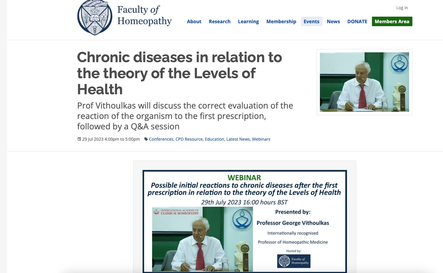 Webinar of Prof. Vithoulkas organised by the Faculty of Homeopathy UK